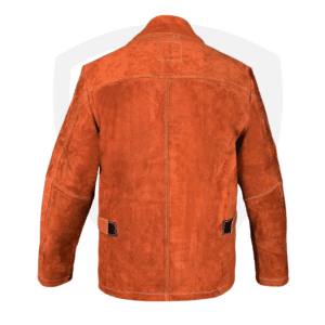 Flame-Resistant Cowhide Welding Jacket – Snap Closure, Kevlar Thread, Adjustable Cuffs