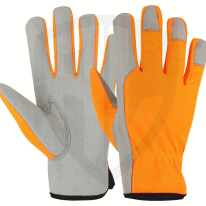 Cotton Back Synthetic Leather Gloves with Knit Wrist